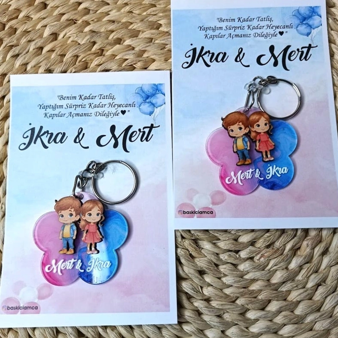Kardeş Temalı Boyamalı Anahtarlık Kartlı