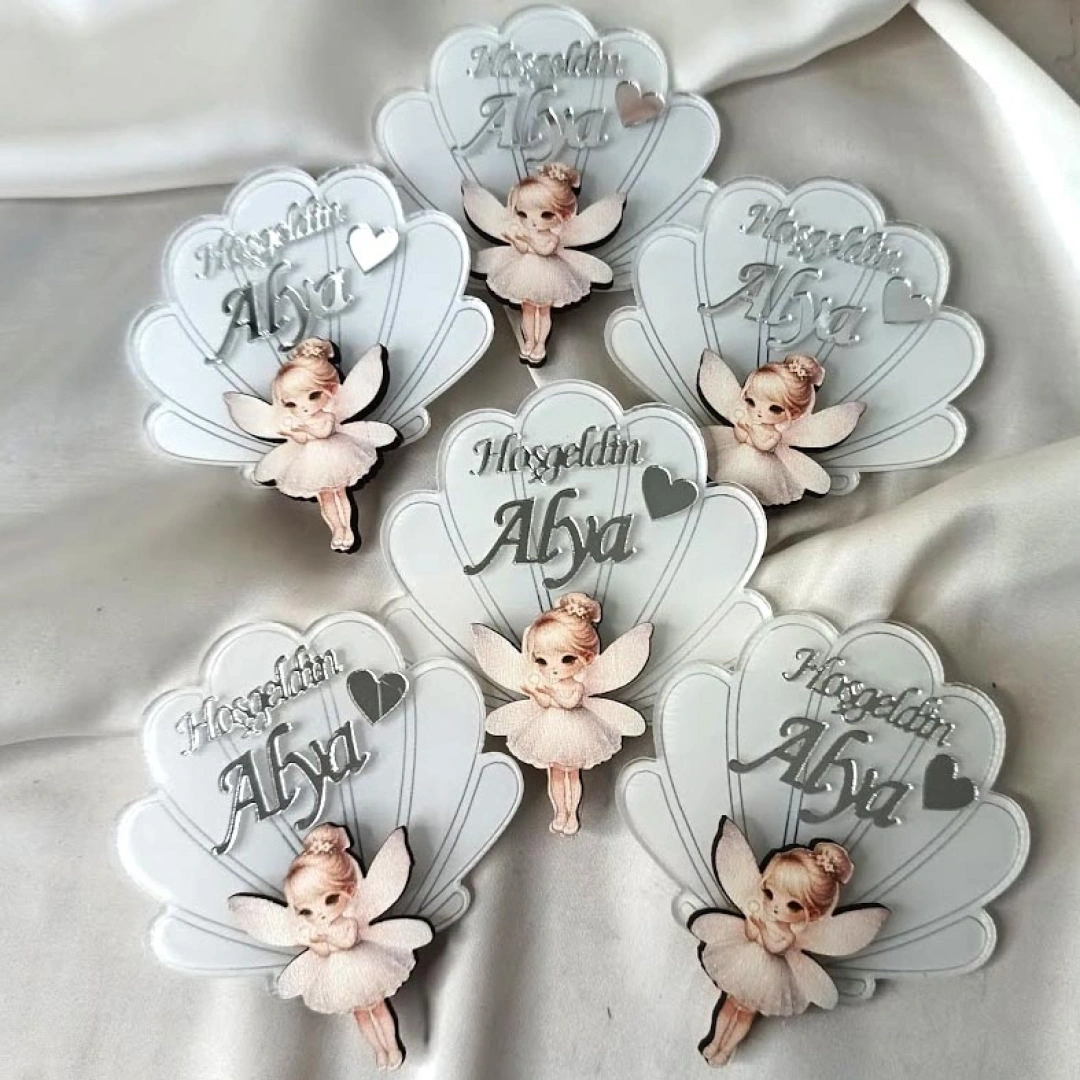 Peri Temalı İstridye Beyaz Boyamalı Magnet